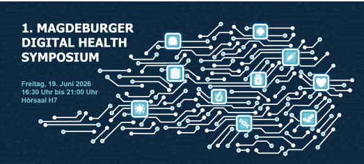 Am 19. Juni 2026 veranstaltet unser Institut für Medical Data Science das „1. Magdeburger Digital Health Symposium“. Es erwartet Sie ein vielseitiges Programm zu aktuellen Themen der digitalen Gesundheit, künstlicher Intelligenz und Bioinformatik in der medizinischen Forschung, sowie neue Lösungen auf dem Gebiet modernster medizinischer Forschungsdatenbanken.